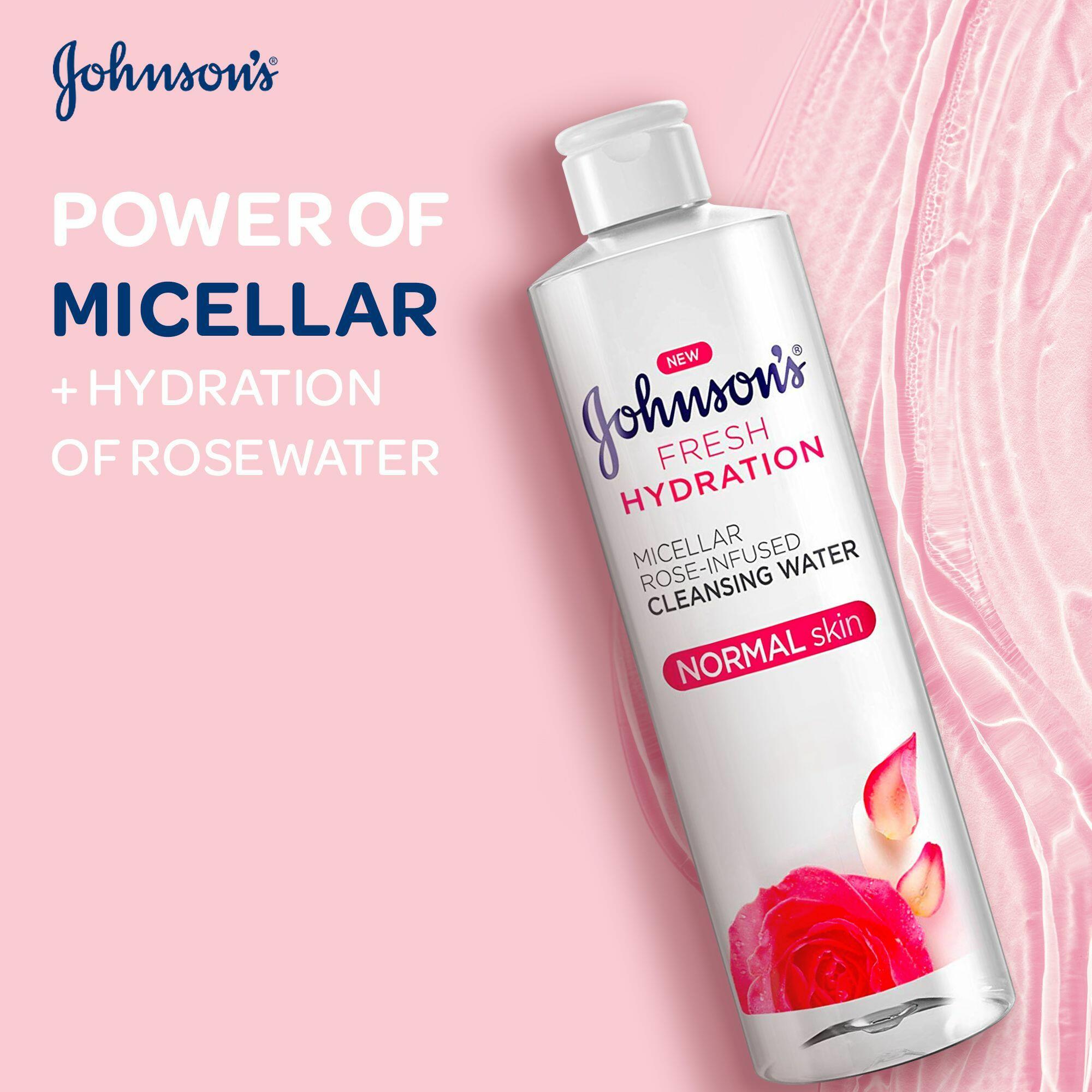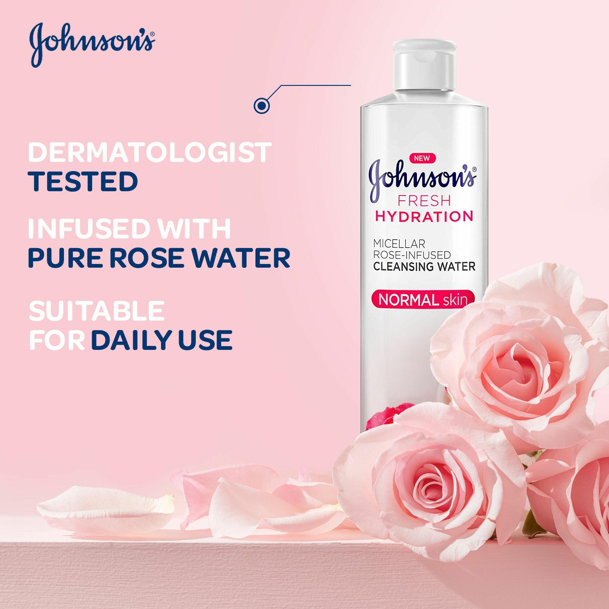 HomeJohnson's Fresh Hydration Rose-Infused Cleansing Water Micellar Water, 400mlJohnson's Fresh Hydration Rose-Infused Cleansing Water Micellar Water, 400ml